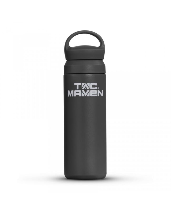 בקבוק תרמוס בנפח של 500 מל של חברת TAC MAVEN מתאים למטיילים ומטפסים עם פקק ואופצייה לחיבור טבעת ולחבר לרתמה או לתרמיל  שומר עד 12 שעות חום קור .