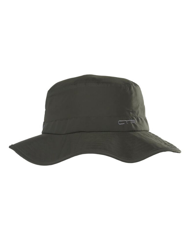כובע מאורר קל משקל ומנדף זיעה עם יכולת הגנה מהשמש של 50+ UPF של חברת CTR לכובע יכולת להתקפל לכיס פנימי קטן בלי לאבד את צורתו שפותחים אותו .