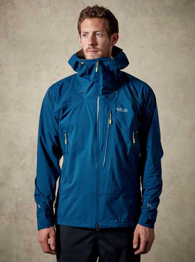 מעיל גשם אטום מים ונושם וסטרצי של חברת RAB האנגלית קלאסי למטפסים או מטיילים שרוצים מעיל קל ואיכותי מבד PERTEX, כמו כן מצוייד בשני כיסי צד וכיס עליון בחזה ואורורים מתחת לידיים לשעת הצורך שנהיה חם בפעילות חורף. הכובע מתלבש גם על קסדת טיפוס וגם יכולת לצמצם אותו על הראש . המעיל בנוי בצורת אריגה של RIPSTOP שעוצר קרעים ומונוע מקרעים ליהפתח .