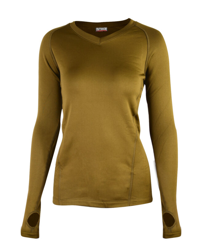 חולצה תרמית נושמת ומנטרלת ריחות לנשים תוצרת OUTDOOR. מיועדת ללבישה מתחת לבגדים, לסילוק מהיר של זיעה ולשמירה על חום הגוף בעת פעילות גופנית במזג אוויר קר. אידיאליים לפעילות ספורטיבית ולאימונים בצבא, לטרקים ולטיפוס אלפיני.
