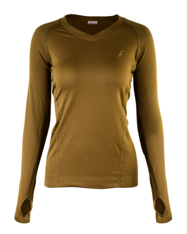 חולצה תרמית נושמת ומנטרלת ריחות לנשים תוצרת OUTDOOR. מיועדת ללבישה מתחת לבגדים, לסילוק מהיר של זיעה ולשמירה על חום הגוף בעת פעילות גופנית במזג אוויר קר. אידיאליים לפעילות ספורטיבית ולאימונים בצבא, לטרקים ולטיפוס אלפיני.