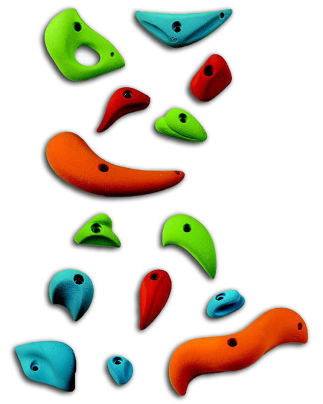 סט של 20 אחיזות טיפוס בגדלים ובצבעים שונים תוצרת Makak צ'כיה. אידיאליות להתקנת פינת אימון ביתית לשמירה על כושר גם כשלא ניתן לצאת לטפס בחוץ. צבעים שונים צורות שונות