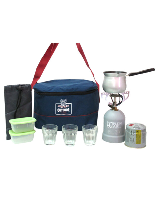 ערכת קפה של חברת OUTDOOR בתיק צידנית מרופד ומבודד אידיאלית לפיקניקים. במחיר שווה לכל כיס עם בלון נקיבה .
