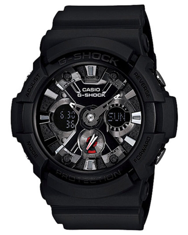 שעון אנלוגי מסדרת G-Shock של Casio יפן. בעל גוף אלומניום וחלקי תצוגה מטאליים המקנים לו מראה אלגנטי יותר משעונים פלסטיים.