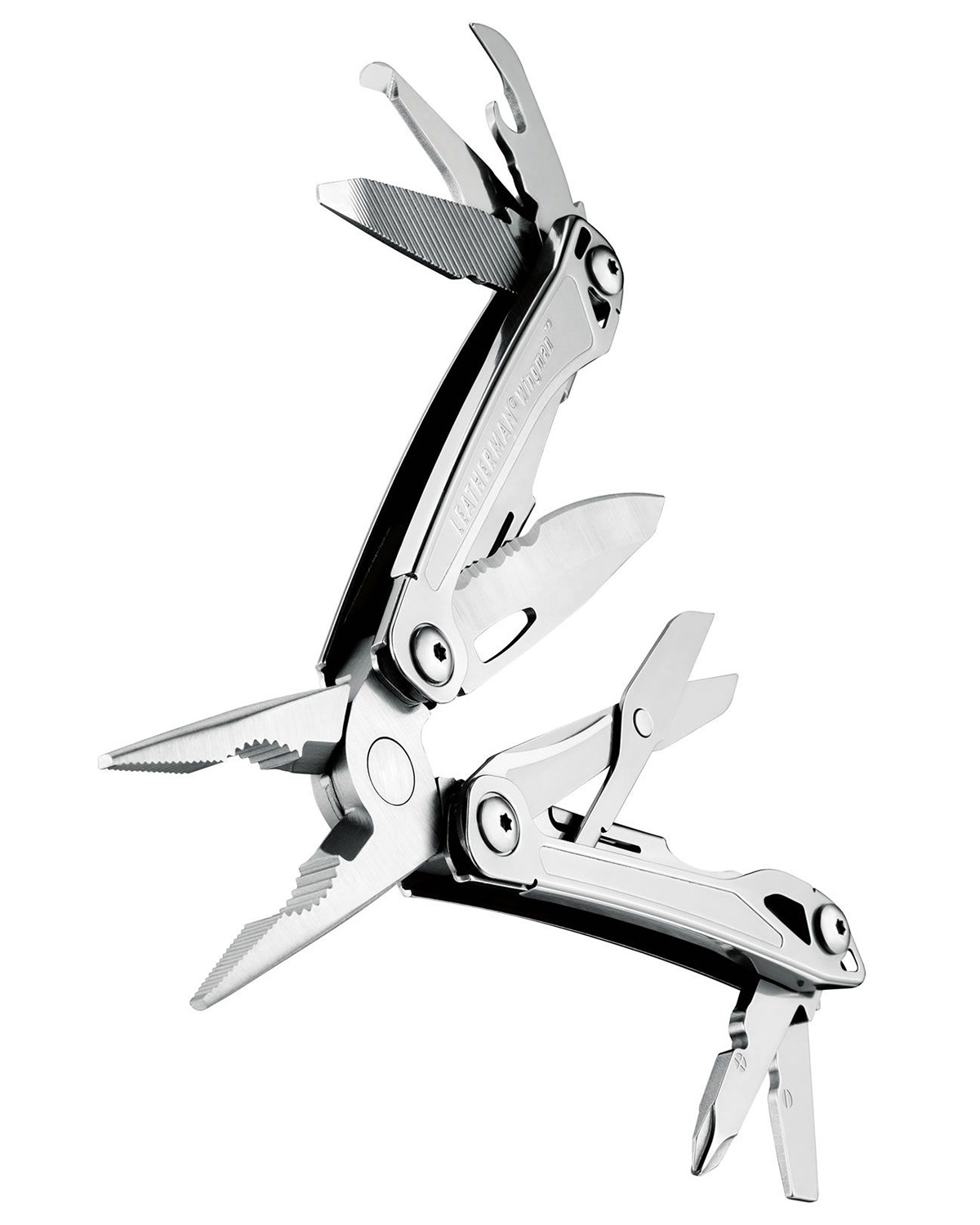 כלי קל ונוח לתפעול מפלדת אל-חלד בעל סכין ומספריים הממוקמים מחוץ לידית לפתיחה מהירה ביד אחת מבלי לפתוח את כל הכלי.