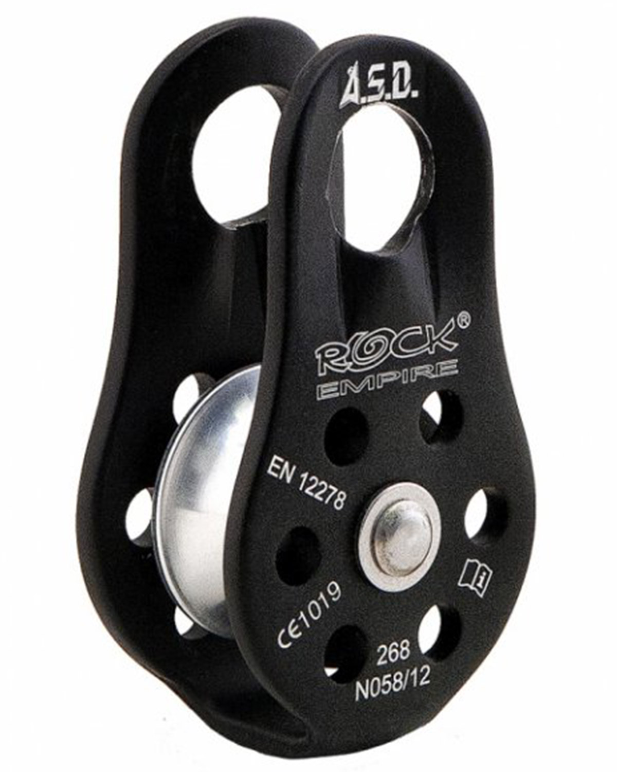 גלגלת קלה וקומפקטית בעלת לחיים קבועות, תוצרת Rock Empire צ'כיה המיועדת לעבודה עם טבעת אליפטית. אידיאלית למשיכת ציוד לתחנה, להסטת כיוון המשיכה של חבלים ולבניית מערכת הרמה בסיסית בשעת חירום .