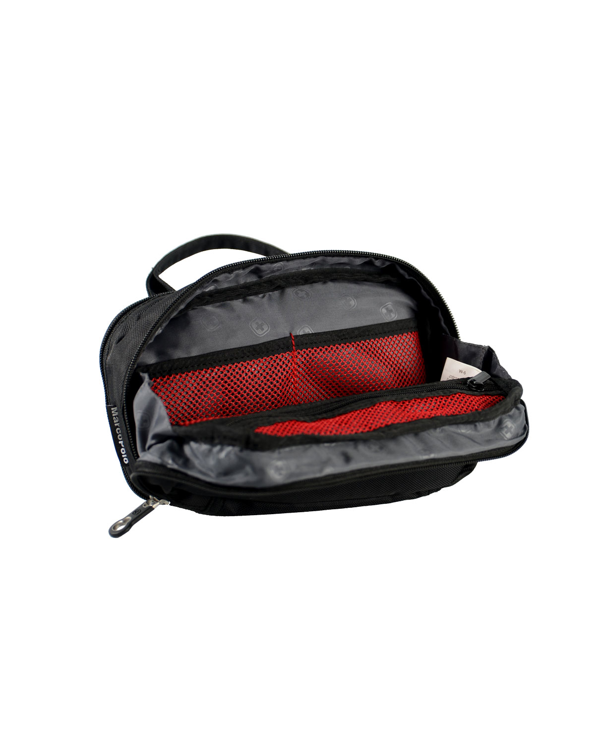 תיק רחצה קומפקטי מבית MARCO POLO. לתיק שלושה תאים לאחסון חפצים בסגירת רוכסן. אידיאלי לנופש בבתי מלון, קמפינג וחופשות ארוכות.