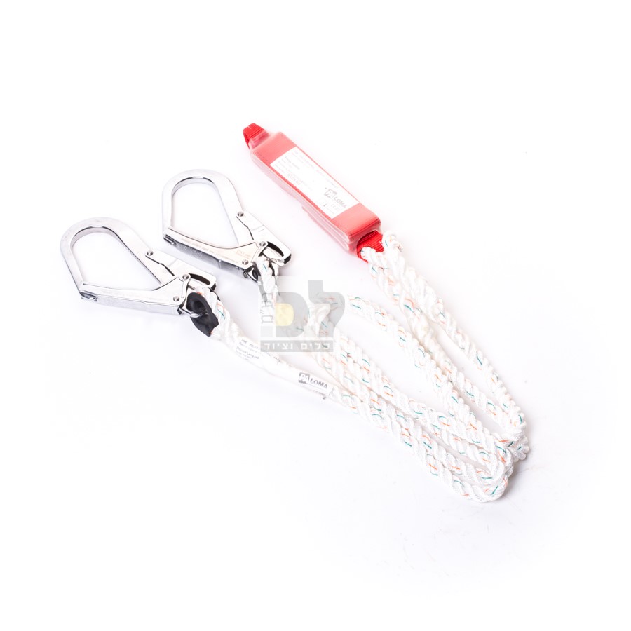 חבל אבטחה עם בולם נפילה ושני טבעות גדולות של חברת PALOMA לאבטחה בטיפוס על סולומות על משטחים משופעים בגובהה או על במות עבודה