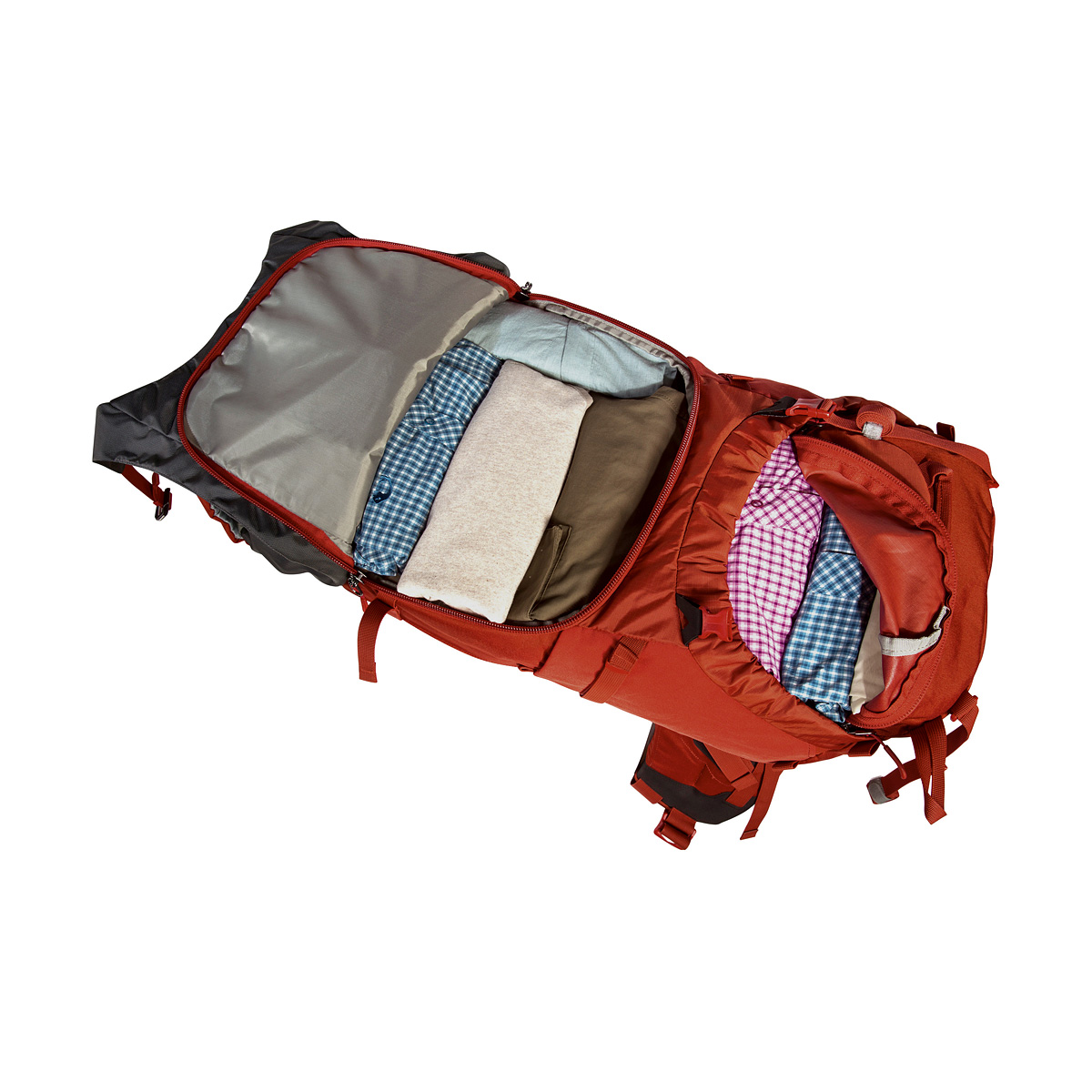 לתרמיל כיסוי נגד גשם וגם יצאיה לשקית שתייה ומקום למקלות הליכה ולסנדלי שלג . תאי אחסון צדדים ומקום לעזרה ראשונה .