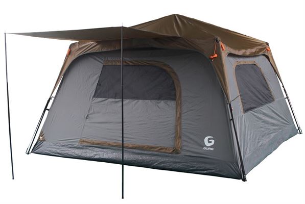 אוהל בן רגע משפחתי ענק ל 8 אנשים של חברת GURO מצוייד ב 3 חלונות עם כילות כיסי צד לחפצים אישים ומתלה לפנס ומאורר בחלקו הפנימי והעליון של האוהל כמו כן מצוייד בפרגולה שלמש ולישיבה בחוץ בכיף . 60 שניות לבניית האוהל ומספר דקות לקיפולו מרווח מאד ומתאים לכל משפחה גם לגבוהים שביננו. בד דוחה מים וטל אחד האוהלים הכי איכותיים בשוק כיום .