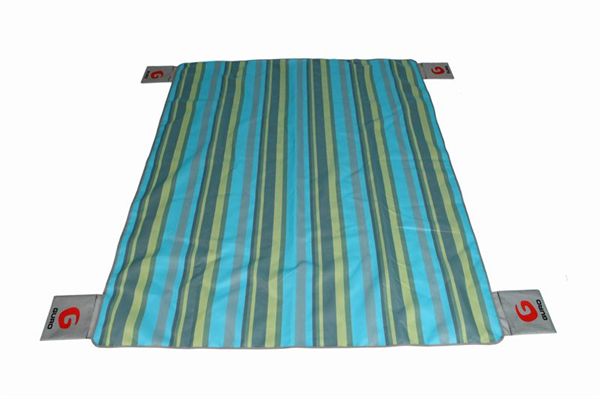 החול אינו נדבק והמחצלת אינה מתרטבת קלה לנשיאה עי ידית עם רצועות סקוץ לגלגול נוח של המחצלת .