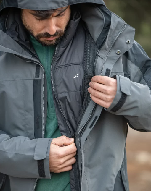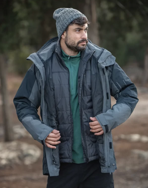 מצוייד ב 5 כיסים חיצונים 2 לידיים ו2 בחזה כמו כן כיס נוסף על שרוול היד .