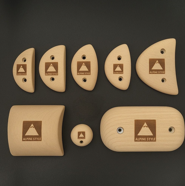 סט של 8 אחיזות מעץ בגדלים שונים משוייפים היטב על מנת שלא ניפצע בידיים בעת האימון כמו כן מגוון של אחיזות פינץ מיני גאג ועוד . קלאסי גם לחובבי הפינגרבורד שלנו ומתאים לכל קיר טיפוס מסחרי או ביתי אם לוק מגניב של עץ. פרי פיתוח של חברת אלפיין סטייל המפתחת מגוון מוצרי טיפוס ישראליים .