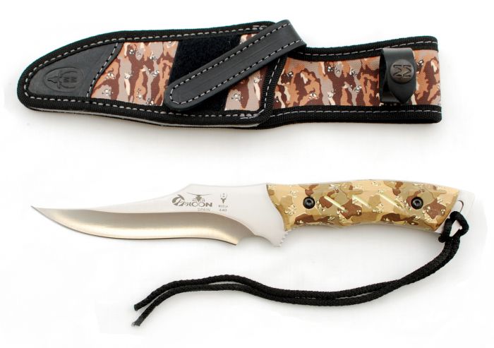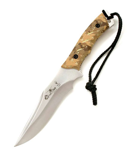 ידית הסכין יוצרה על ידי שימוש בפנול (Phenol) והיא רכה, ארגונומית ונוחה במיוחד לאחיזה, גם בתנאים לא אידיאליים. הידית מציגה צבעי הסוואה מדבריים המעניקים לסכין מראה מיוחד אשר תופס את העין מיד. בקצה הידית ניתן למצוא מיתר שבעזרתו המשתמש יכול לאבטח את הסכין אליו.