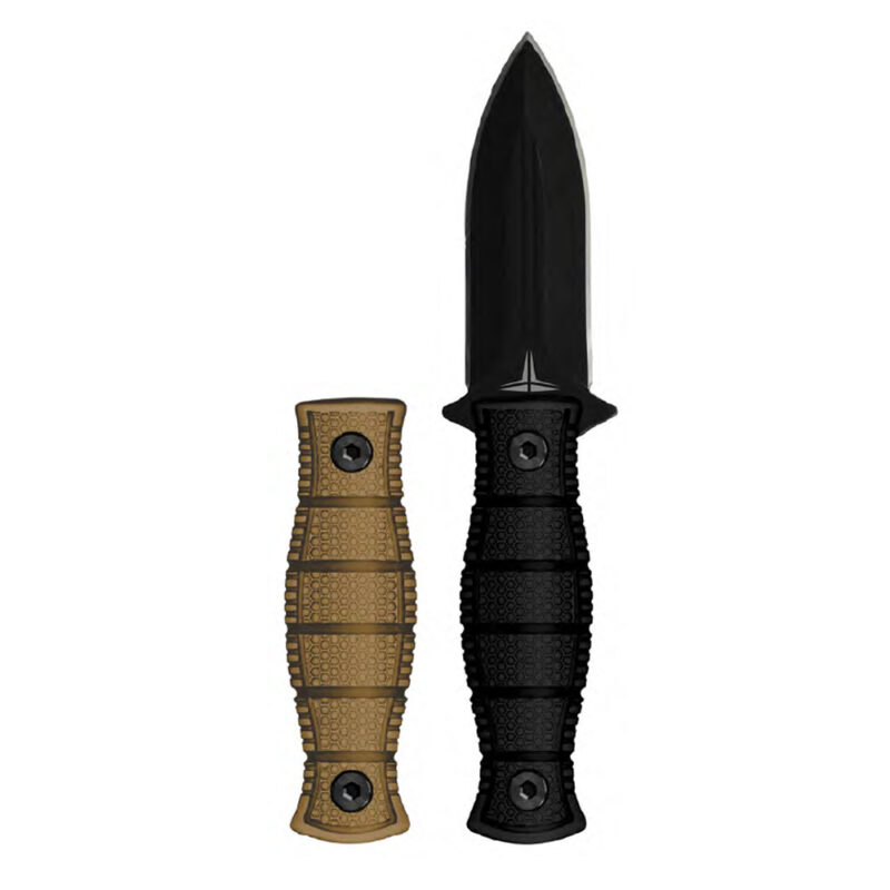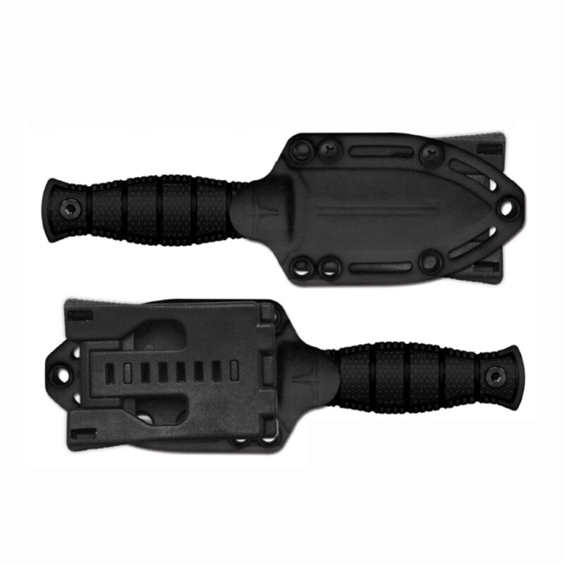 ידית סכין ה- Little Buddy עשויה FRN (Fiberglass Reinforced Nylon) בעיצוב ארגונומי בעל חיספוס. הסכין מגיעה עם פלטות ידית בשני צבעים- שחור וחום, כך תוכלו להתאים את הסכין לפי טעמכם האישי. בקצה הידית נמצא חור קטן אליו ניתן להשחיל מיתר לאבטוח של הסכין ליד המשתמש.