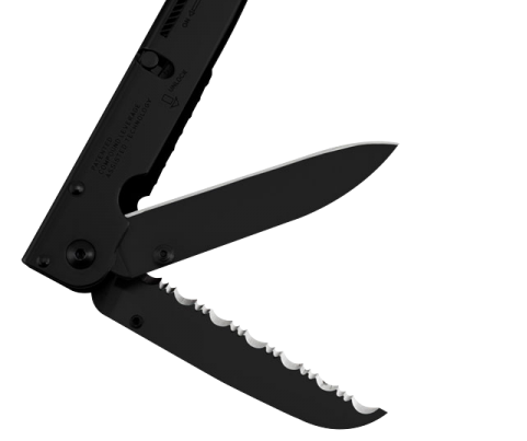 כולל: חותך מיתרים (V Cutter), להב חלק, להב משונן, מברג פיליפס בינוני, מברג שטוח בינוני, מברג שטוח גדול, מברג שטוח קטן, מגלף חוטים, משפרי אחיזה, סכין חילוץ (V-Cutter), סרגל מדידה, פותחן בקבוקים, פותחן שימורים, פלייר שפיץ, פצירה תלת צדדית, קאטר (חותך מיתרים)