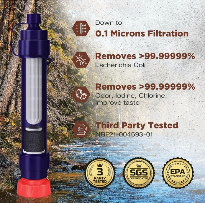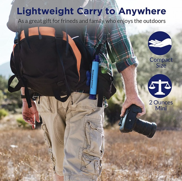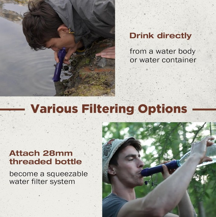 תוחלת חיים ארוכה של עד 20,000 ליטר מים נקיים. אפשרות לשתות ישירות מכל מקור מים עכור או בחיבור לבקבוק. עומד בתקני מסנן EPA, עשוי מחומרים באיכות מזון וללא BPA, מבטיח מים בטוחים לשתייה.